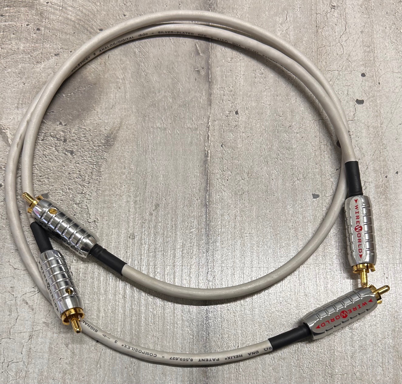 Coppia di cavi di interconnessione audio Solstice 8 : grazie al nuovo design Tri DNA HELIX, i conduttori in rame privo di ossigeno placcati in argento e l’isolamento COMPOSILEX 3 di Solstice 8 migliorano la riproduzione dei dettagli e dell’espressione musicale nelle applicazioni analogiche e digitali bilanciate. Questo cavo audio è dotato di connettori RCA Gold-Tube™ con una presa salda e liscia e la più alta conduttività della categoria.